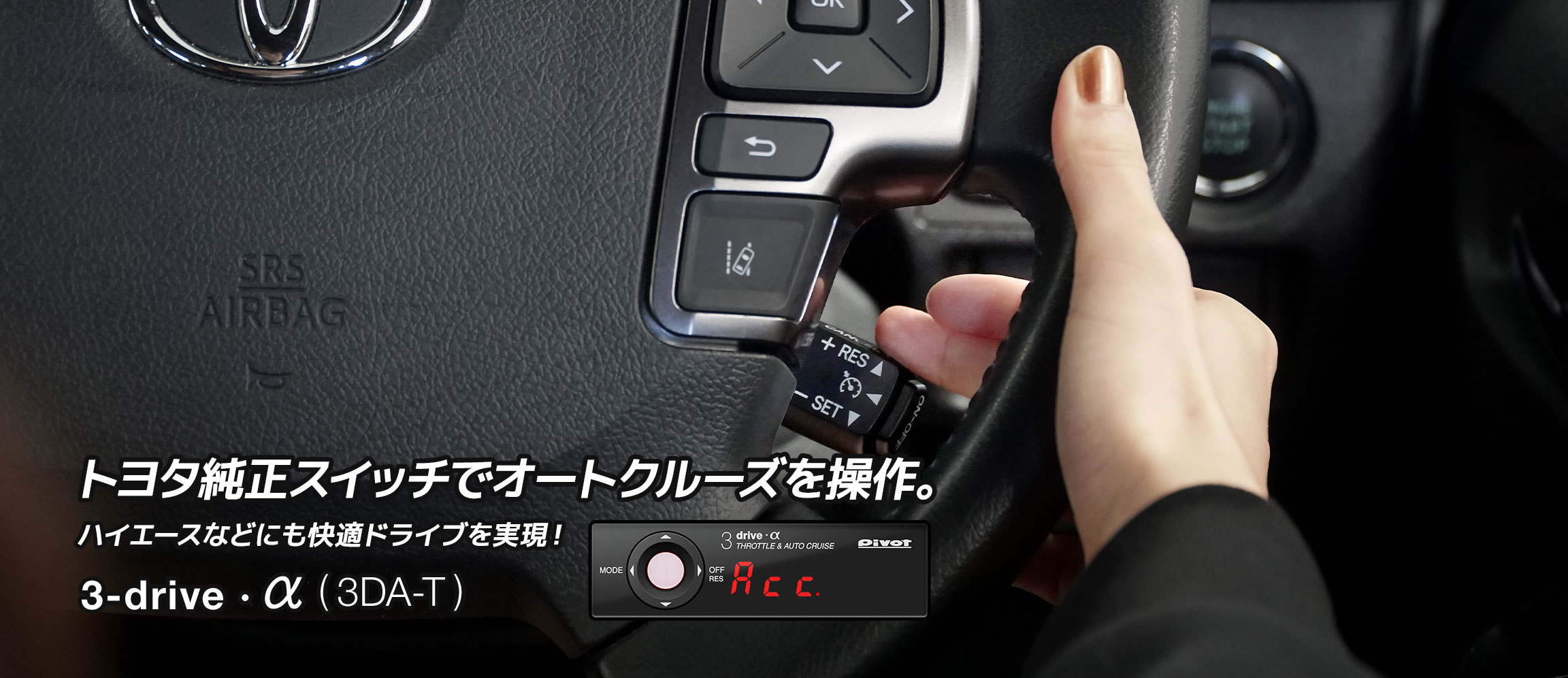 トヨタオートクルーズスイッチでも操作できる3DA-T、ハイエースにはオートクルーズ付きスロコンが定番です。