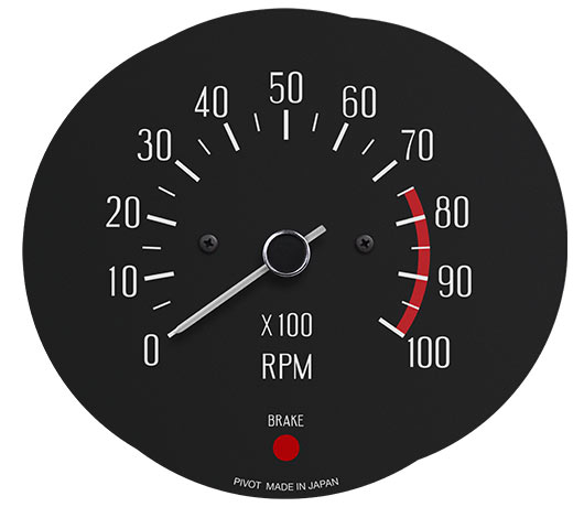本製品は、文字板と指針部を純正と同じ形状に新規設計した部品に、高精度でハイレスポンスなステッピングムーブメントを組み込んだ旧車用タコメーターです。